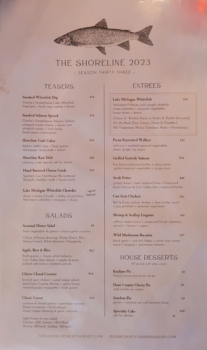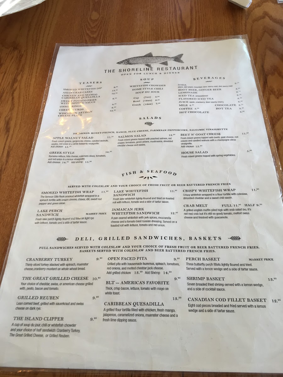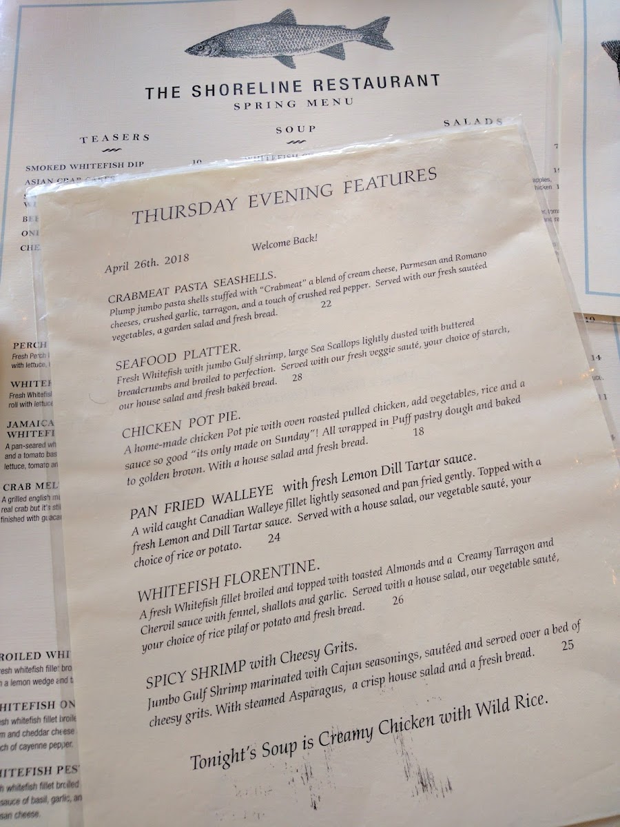 Shoreline Restaurant Menu